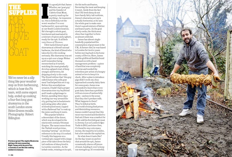 “We wanted to put together a feature that was a proper guide to cooking goat for beginners and experienced goat eaters. We collaborated with James Whetlor who owns Cabrito to introduce it, as well as carry out what we called ‘the project’, which was the massive goat shawarma.